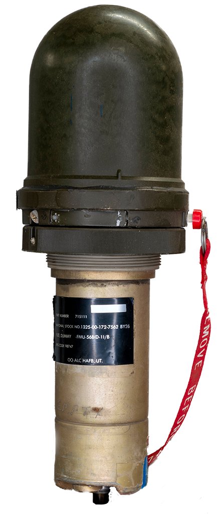 The FMU-56 series was developed during the Vietnam War era when the United States was rapidly expanding its inventory of cluster munitions and required sophisticated fuzing systems to optimize weapon effectiveness. Motorola’s Government Electronics Division, known for radar and electronic warfare systems, provided the electronic proximity sensing technology for this fuze family.