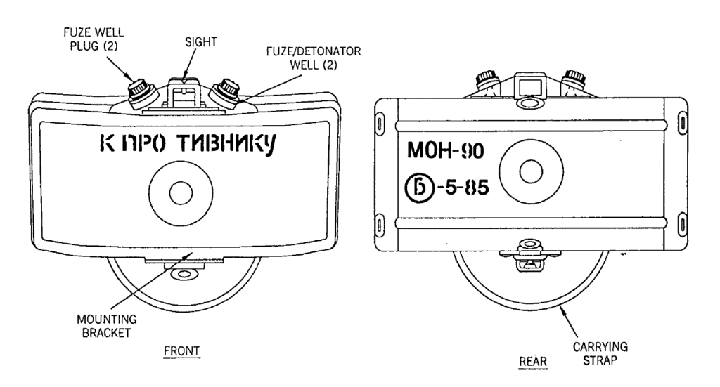 - Name Derivation: MON = “Mina Oskolochnaya Napravlennaya” (Directional Fragmentation Mine); 50 = nominal fragment dispersal angle of 50 degrees