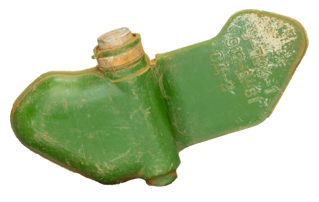 A: The nickname “butterfly mine” comes from the distinctive wing-like stabilizer that extends during descent, giving it a shape reminiscent of a butterfly in flight. The bright colors (green, tan, sometimes red) were NOT intended to make the mine visible as a warning – this is a common misconception. Soviet military doctrine intended these colors to provide camouflage in specific environments: green blends with vegetation and grass, tan blends with desert sand and soil, etc. The tragic irony is that in practice, these bright colors make the mines highly visible and attractive to children who mistake them for toys. In Afghanistan, children called them “green parrots” because of the bright green color and unusual shape. The colors have contributed to the extraordinarily high rate of child casualties associated with PFM-1 mines. Modern demining education programs must specifically warn children not to touch these “interesting” objects, as the attractive appearance works against safety.
