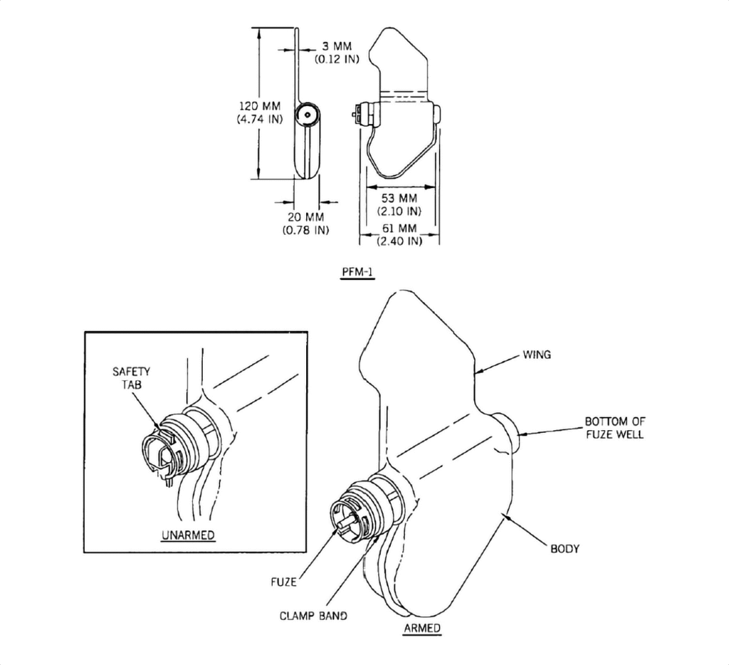 - Self-Destruct: None on standard PFM-1 (PFM-1S variant claimed 4-hour or 4-day self-destruct, rarely encountered)