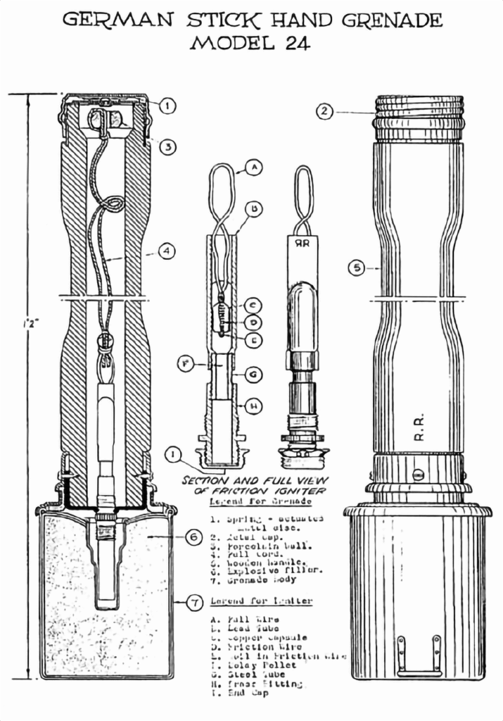 - Primary Designation: Stielhandgranate 24 (stick hand grenade model 1924)